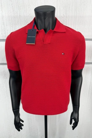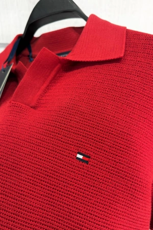 Erkek Premium %100 Cotton (Pamuk) Regular Fit Örgü Triko Polo Tişört - Kırmızı