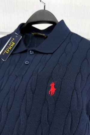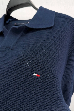 Erkek Premium %100 Cotton (Pamuk) Regular Fit Örgü Triko Polo Tişört - Lacivert