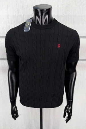 Erkek Premium %100 Cotton (Pamuk) Regular Fit Örgü Triko Tişört - Siyah