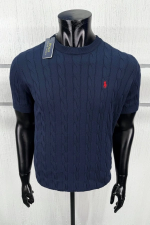 Erkek Premium %100 Cotton (Pamuk) Regular Fit Örgü Triko Tişört - Lacivert