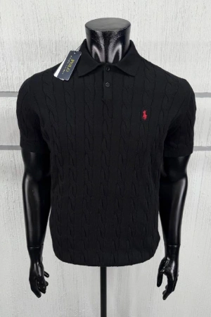 Erkek Premium %100 Cotton (Pamuk) Regular Fit Örgü Triko Polo Tişört - Siyah