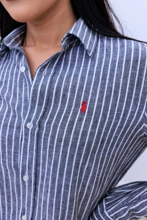 Kadın Premium %100 Linen (Keten) Regular Fit Çizgili Gömlek - Siyah