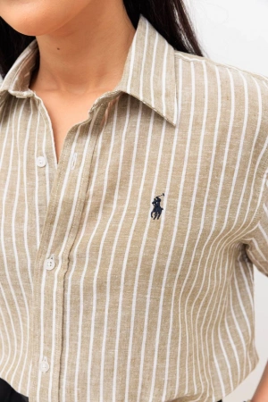 Kadın Premium %100 Linen (Keten) Regular Fit Çizgili Gömlek - Bej