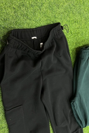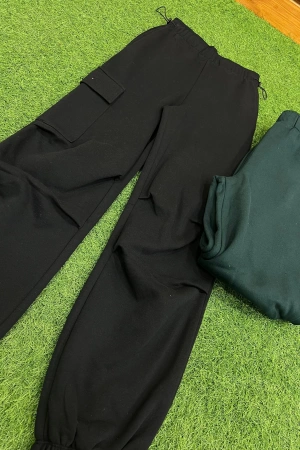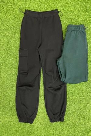 3 İplik Şardonlu Kargo Cepli Bel Ayarlanabilir Lastikli Eşofman Siyah