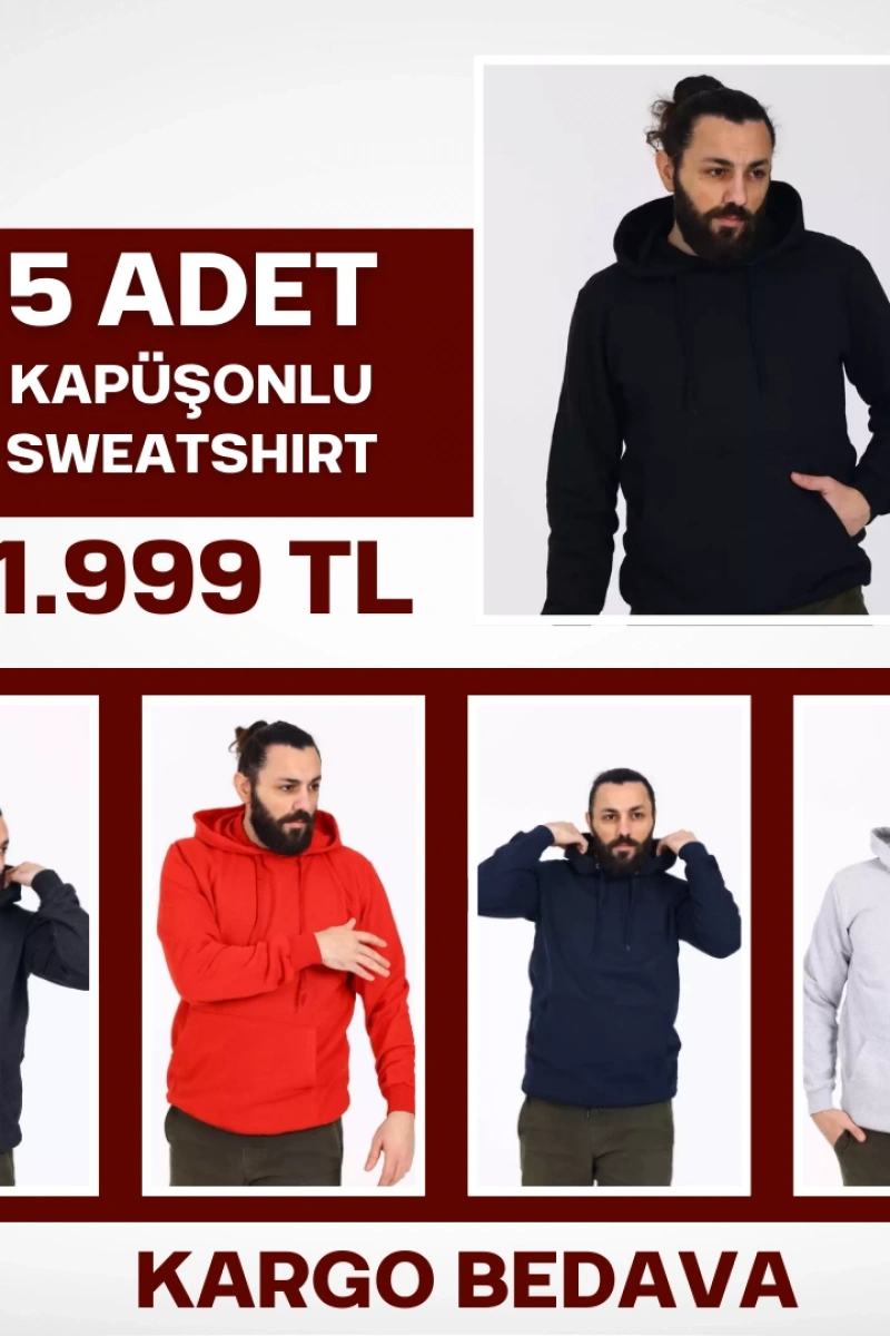 5 Adet Kapüşonlu İçi Polarlı Regular Kalıp Erkek Sweatshirt