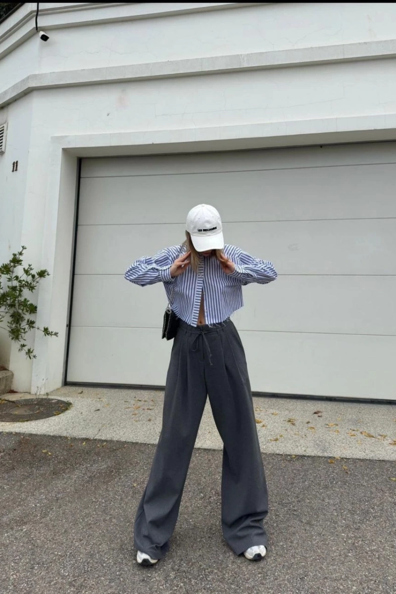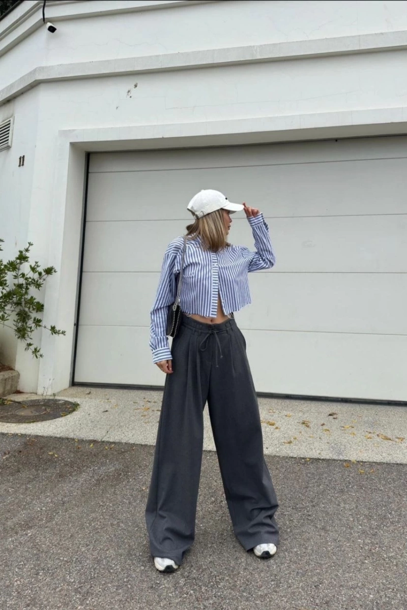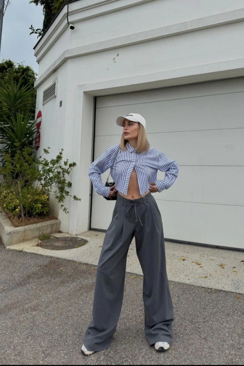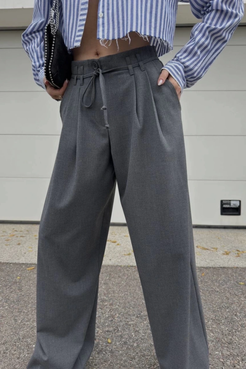 Bağcıklı Palazzo Bol Paça Pantolon - Gri