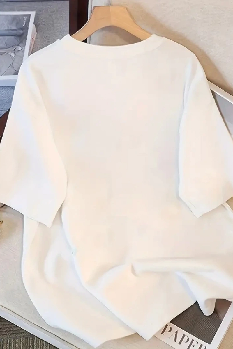 Kadınlar için Şık Siyah Kedi Grafik Tişört - Oversize Kısa Kollu Üst, Nefes Alabilir Polyester Karışımı, Makinede Yıkanabilir - Mükemmel Yaz Modası - Beyaz