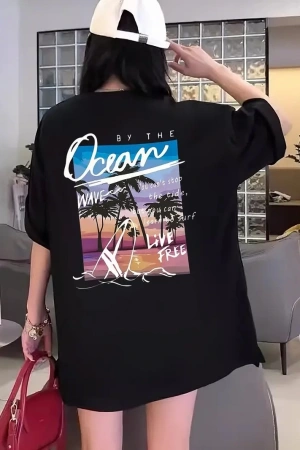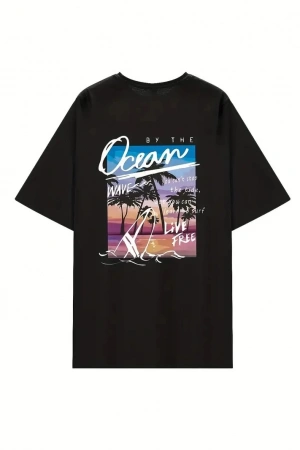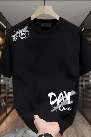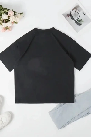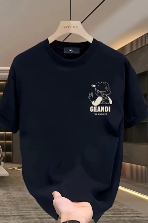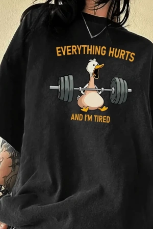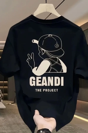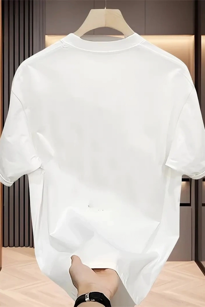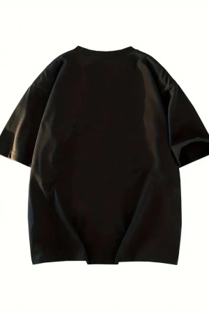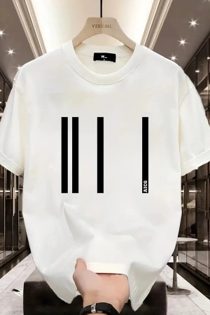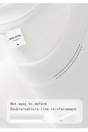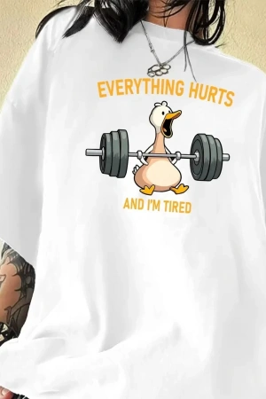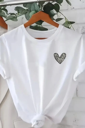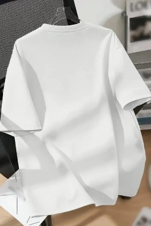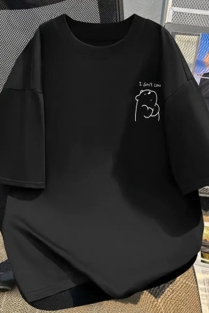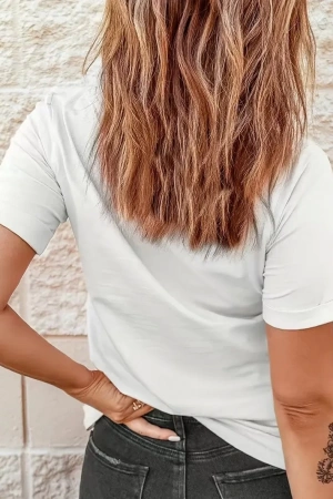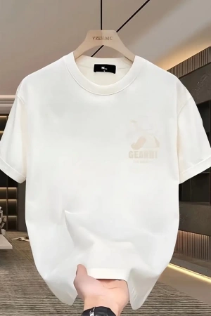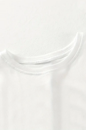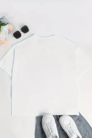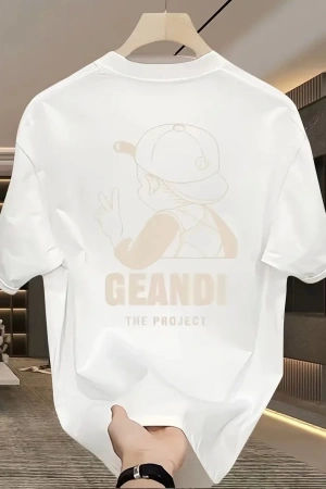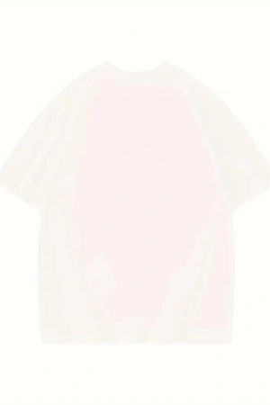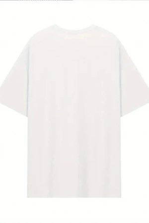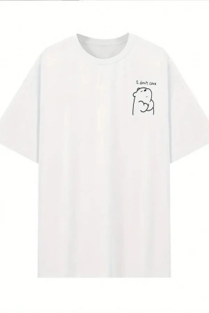 Rahat Bisiklet Yaka Tişört, Yaratıcı Karikatür Baskı - Yumuşak Polyester, Her Mevsim Giyilebilir- Beyaz