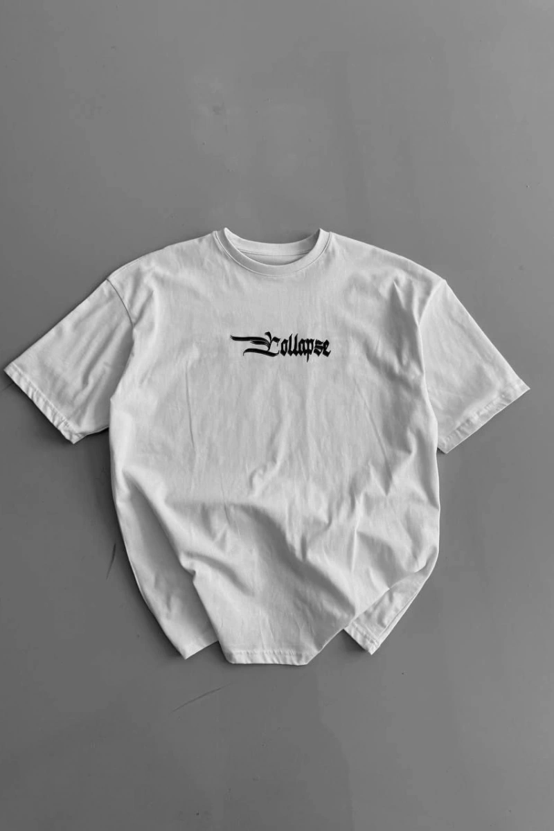 20/1 Penye Compack Baskılı Oversize Bisiklet Yaka Kısa Kol Yazlık T-shirt - Beyaz