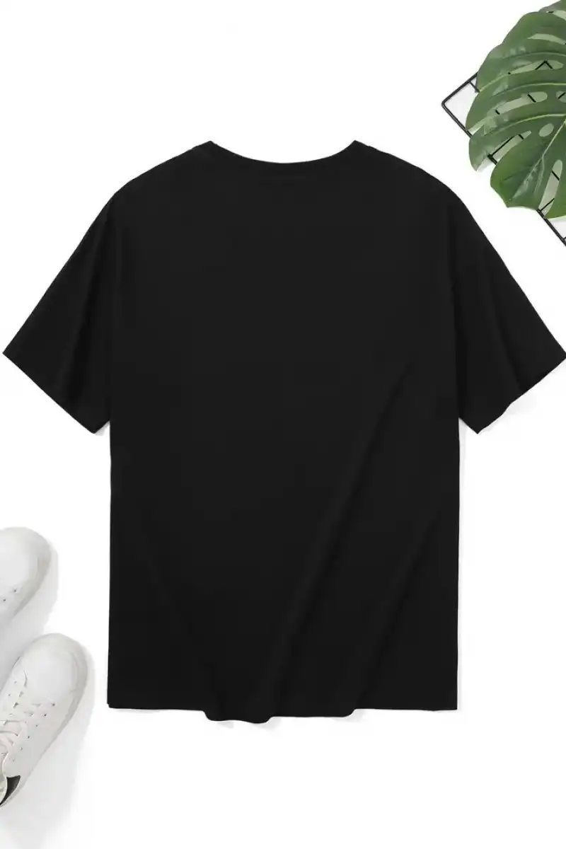 20/1 Penye Compack Sarj %1 Baskılı Oversize Bisiklet Yaka Kısa Kol Yazlık T-shirt - Siyah