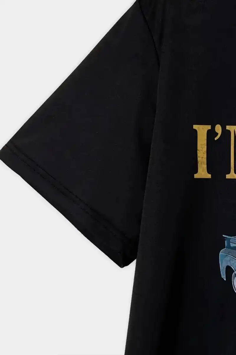 Erkek Vintage Araba Grafik T-Shirt - Ben Yaşlı Değilim Ben Bir Klasiğim Esprili Baskı  Nefes Alabilir Kumaş, Günlük Yaz ve Yıl Boyu Giyim için Oversize Kısa Kollu Tişört - Siyah