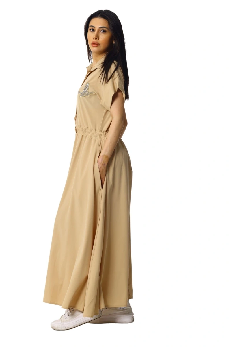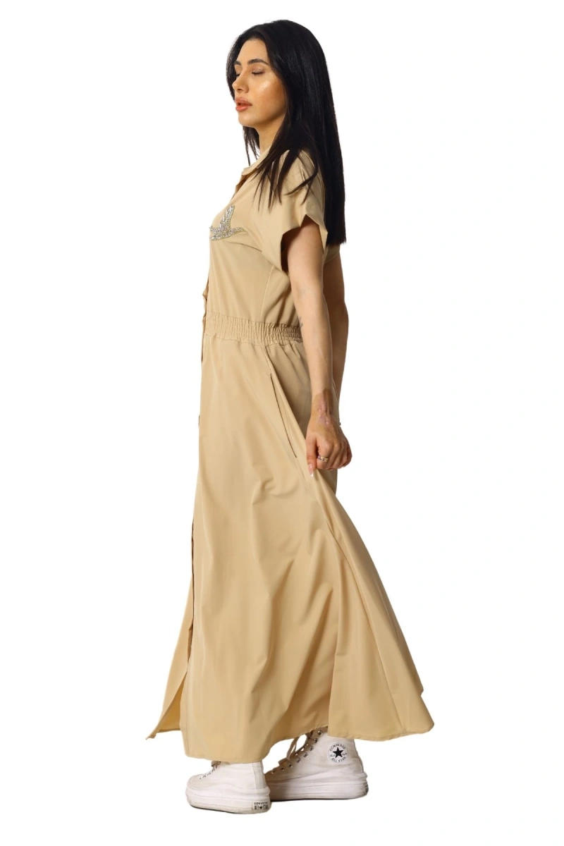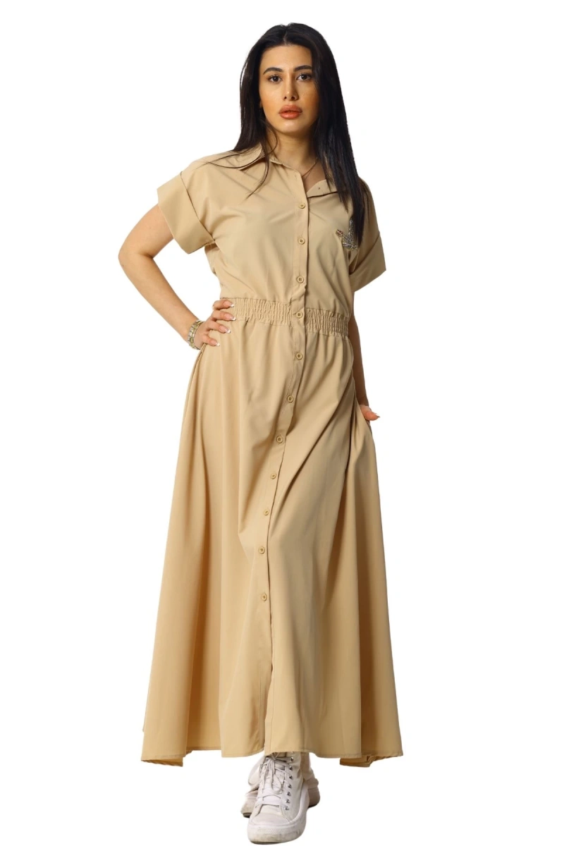 Bu sezonun trend parçalarından Bej Taşlı Kuş Logo Detaylı Uzun Gömlek Elbise, şıklığı ve rahatlığı bir arada sunuyor. Tam12den Home kalitesiyle tasarlanan elbise, zarif kesimi ve detaylarıyla ön plana çıkıyor.