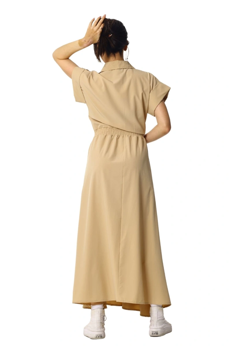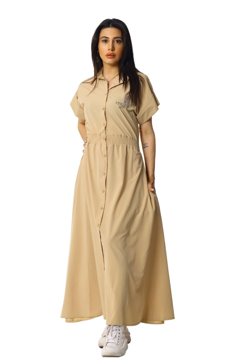 - Klasik yaka, düğme kapatmalı, uzun gömlek elbise