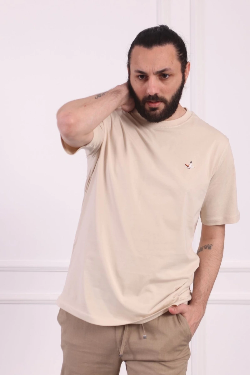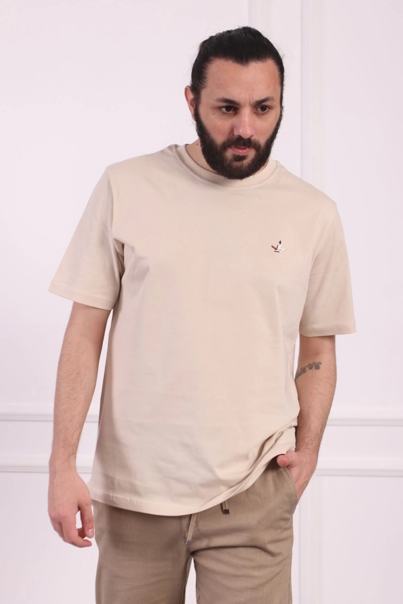 Bisiklet Yaka Erkek Pamuklu Regular Fit Tişört Bej