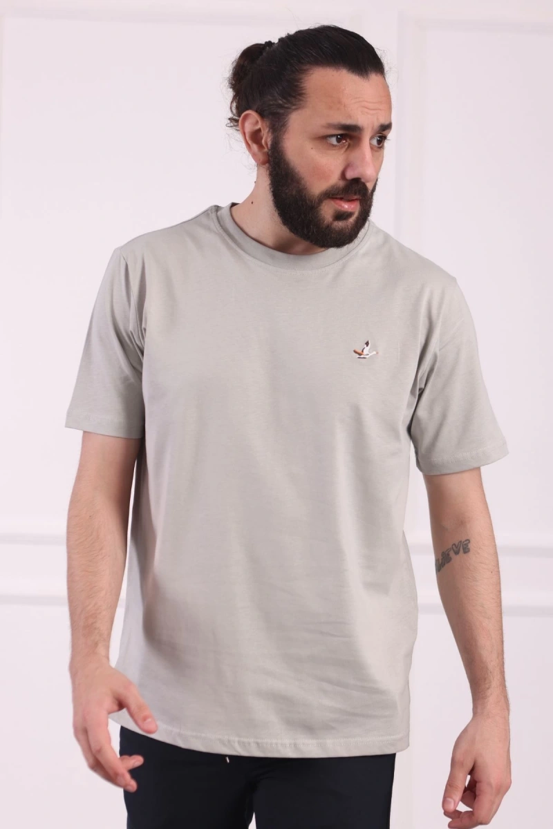 Bisiklet Yaka Erkek Pamuklu Regular Fit Tişört Gri
