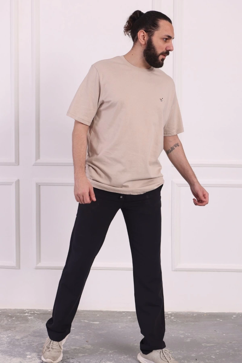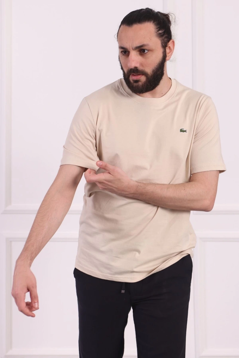 Bisiklet Yaka Erkek Pamuklu Regular Fit Tişört Vizon