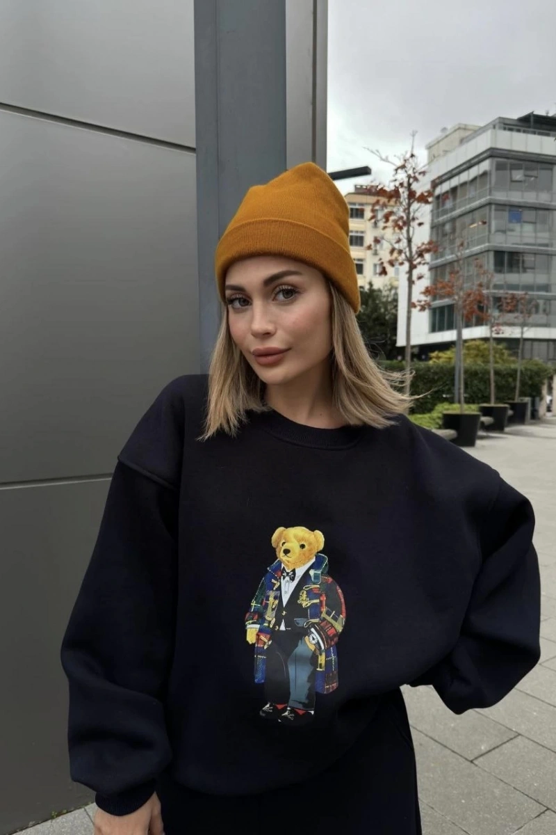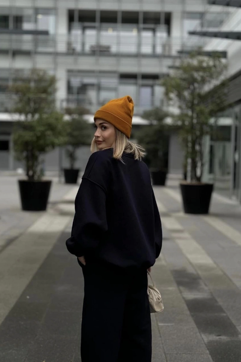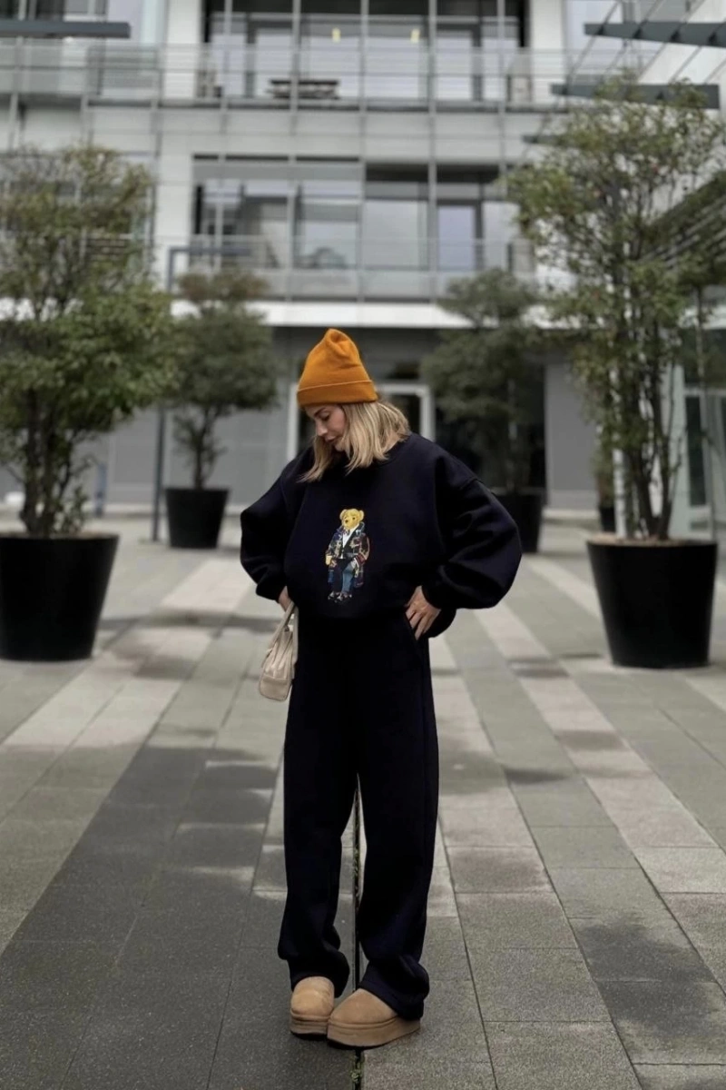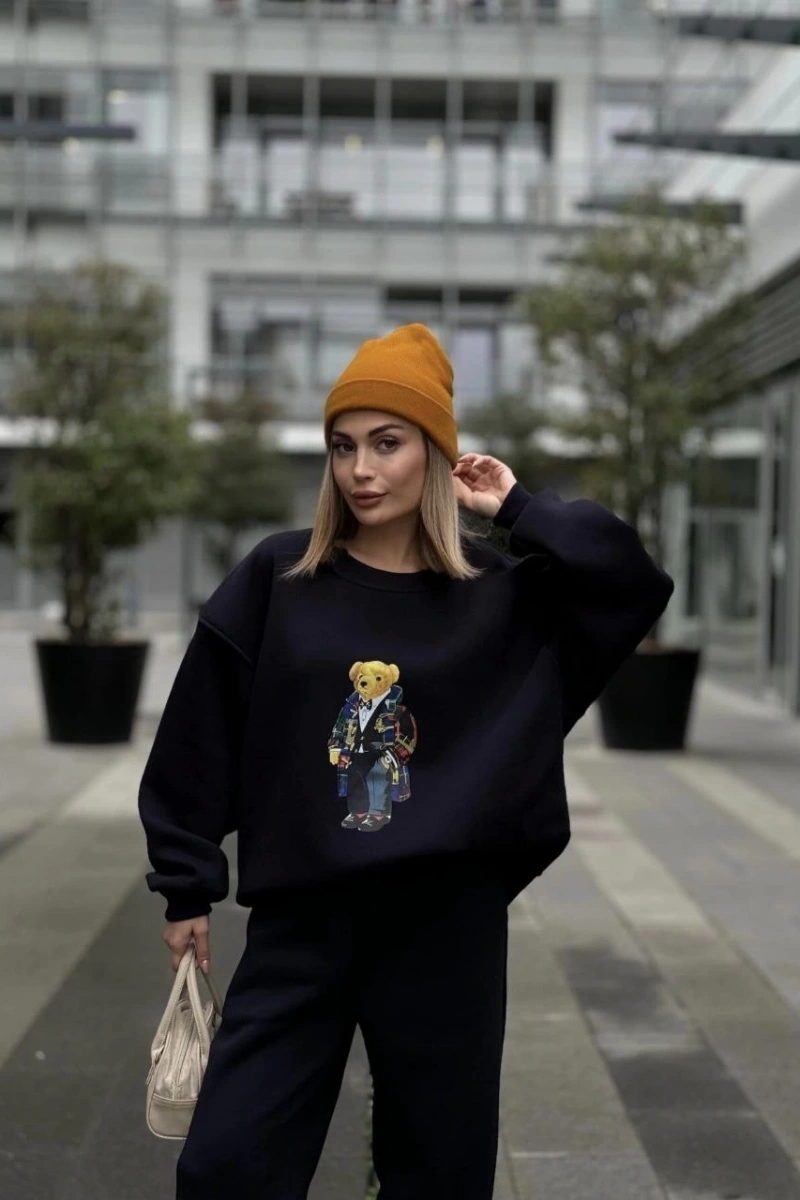 Bisiklet Yaka Üç İplik Sweat Takım - Siyah