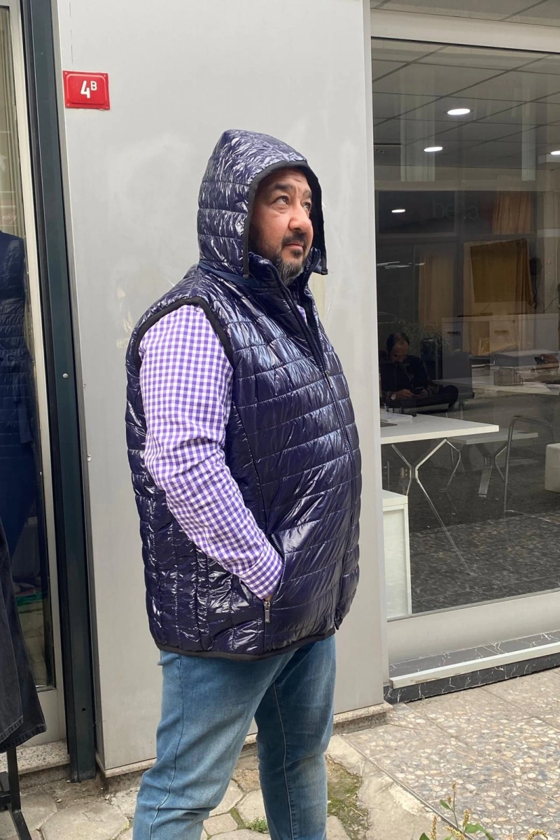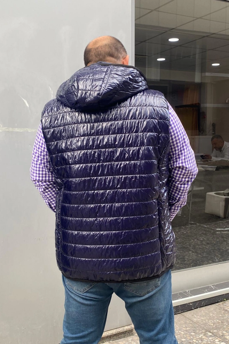 Büyük Beden Erkek Kapitone Yelek Kapüşonlu İndigo