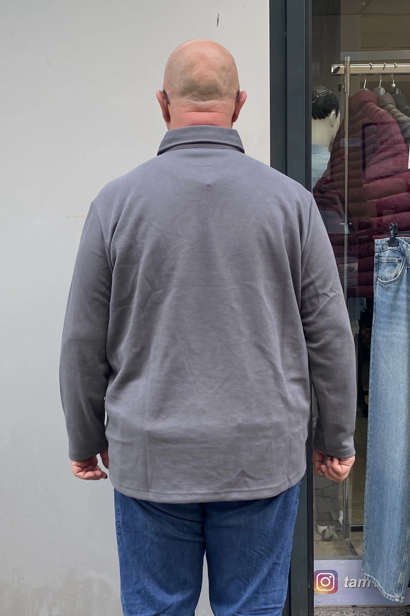 ModeXL Büyük Beden Tshirt Polo U.Kol Cepli Füme