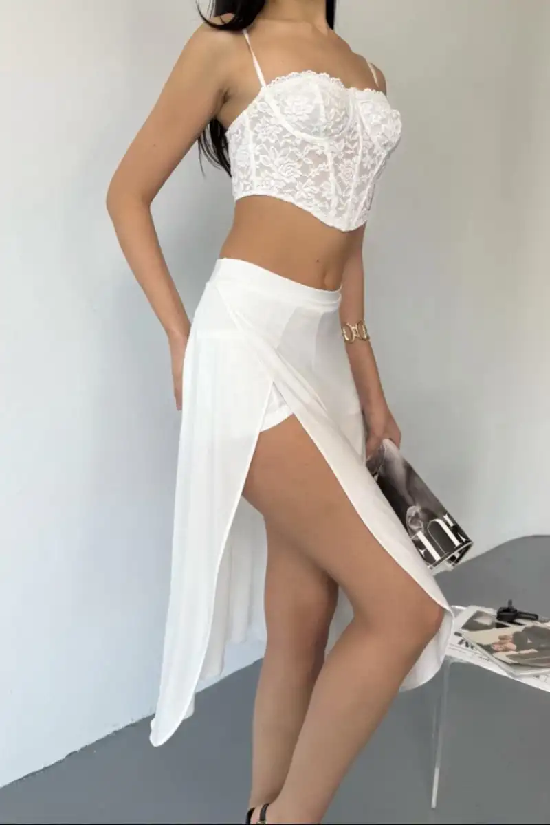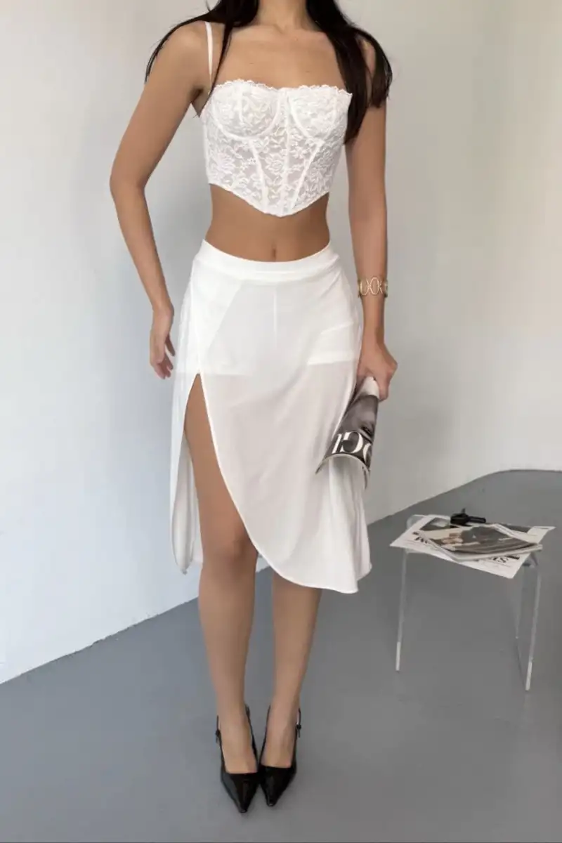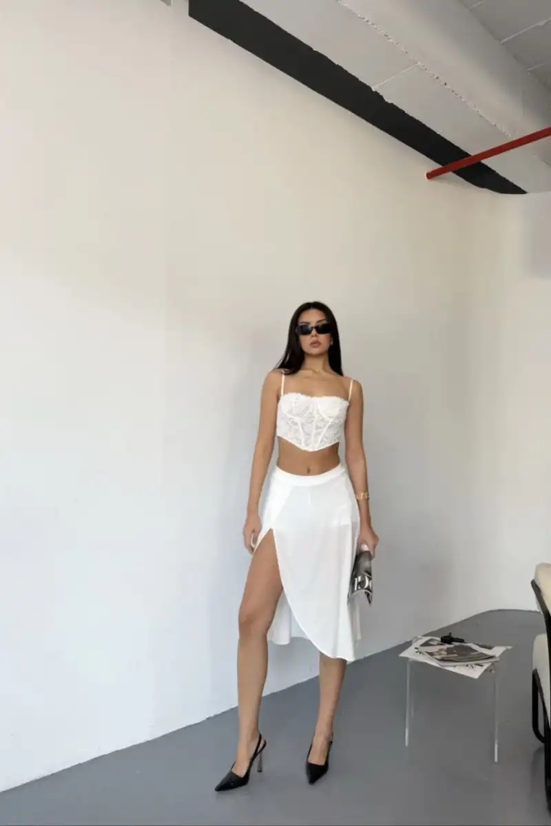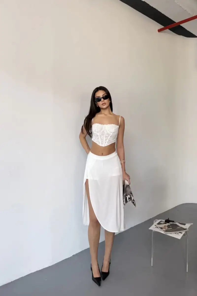Cepli Şortlu Yırtmaçlı Etek - Beyaz