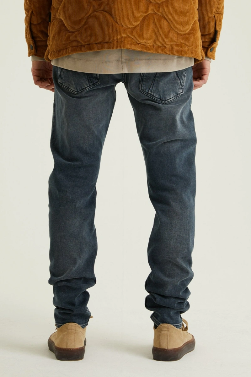 Bu 5 cepli kot pantolon, açık renk yıkama ve sağ uylukta, bozuk para cebinde, deri yamada ve arka ceplerde CHASIN’ imzalı detaylarla donatılmıştır. Fermuar düğmeli kapamaya sahiptir.