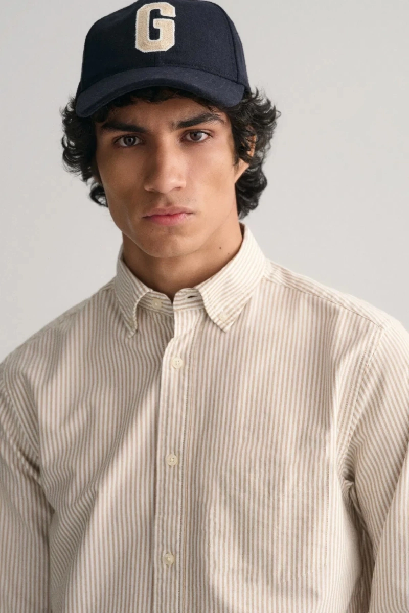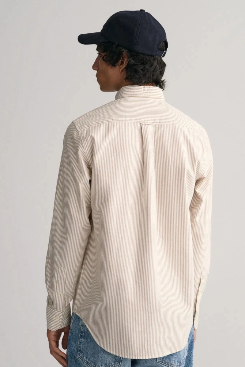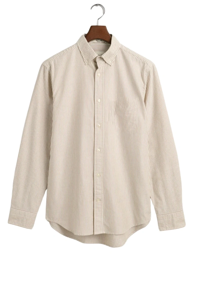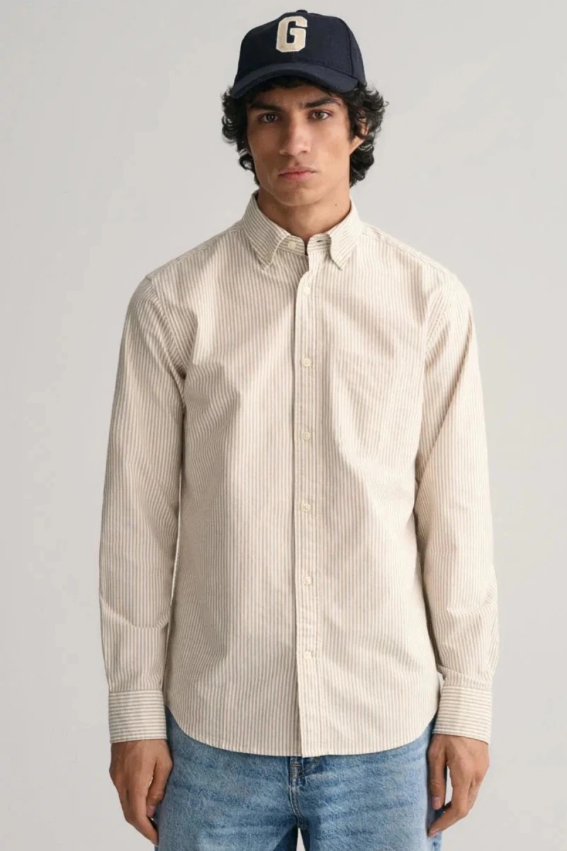 Çizgi Desenli %100 Pamuk Erkek Gömlek Vizon Çizgili