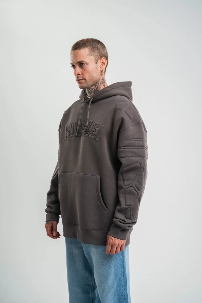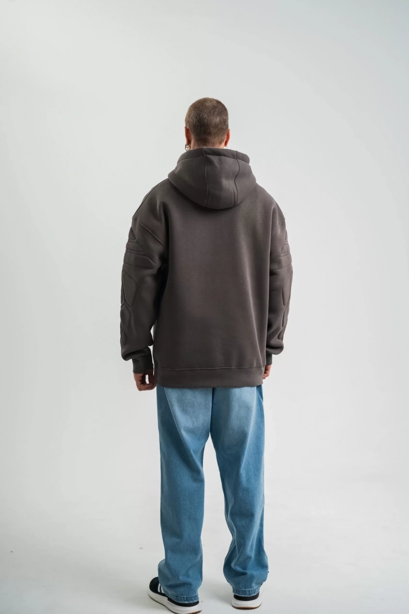 Double Oversize Kapşonlu Nakışlı SweatShirt - Füme
