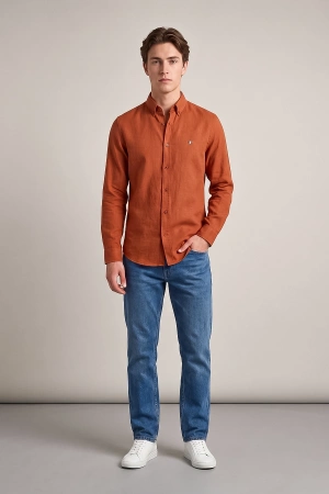 Erkek Regular Fit Yazlık Keten Gömlek Kiremit