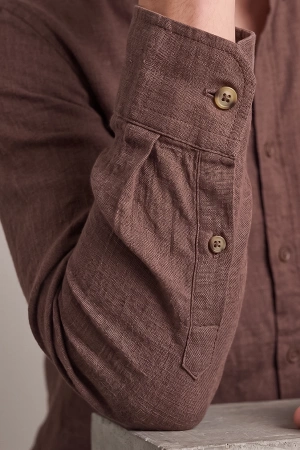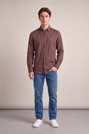 Erkek Regular Fit Yazlık Keten Gömlek Kahverengi
