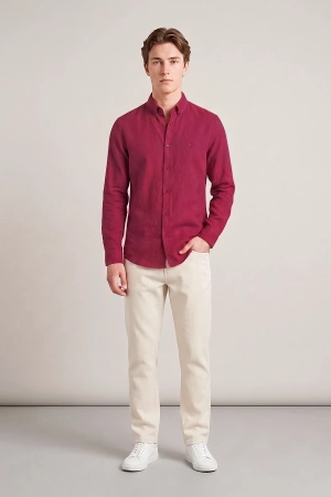 Erkek Regular Fit Yazlık Keten Gömlek Bordo
