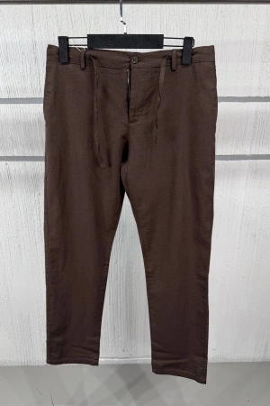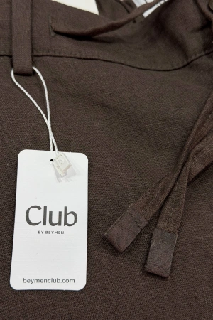 Erkek Premium %100 Linen (Keten) Regular Fit Bağcıklı Pantolon - Kahverengi