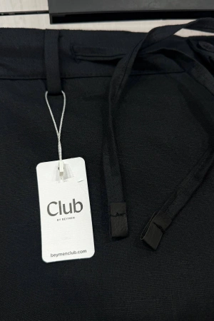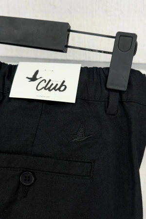 Erkek Premium %100 Linen (Keten) Regular Fit Bağcıklı Pantolon - Siyah