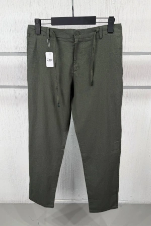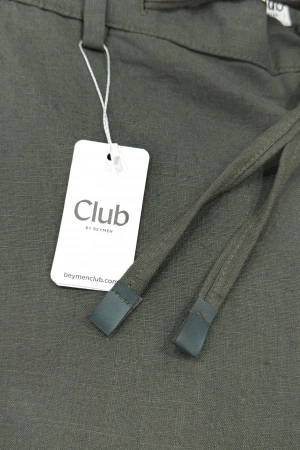 Erkek Premium %100 Linen (Keten) Regular Fit Bağcıklı Pantolon - Haki