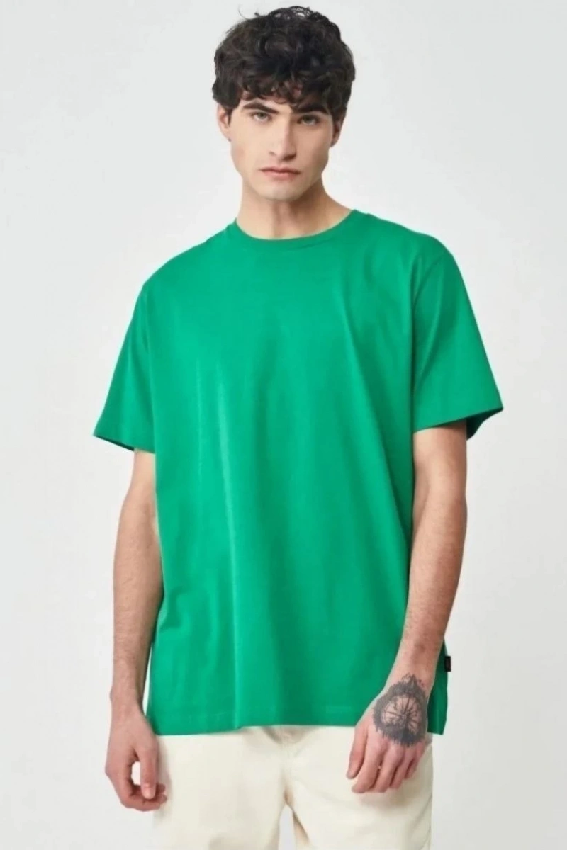 Erkek 24/1 Düz A Kalite Oversize T-shirt - Yeşil