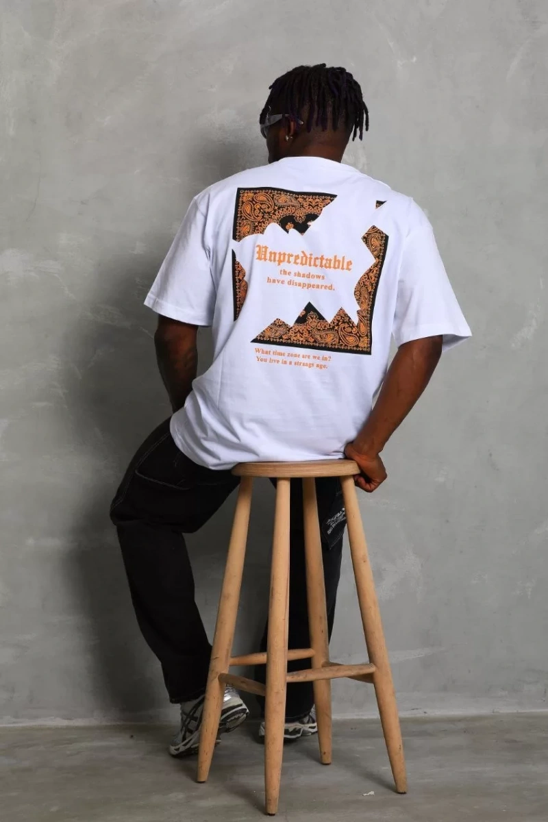 Unisex Oversize Baskılı Bisiklet Yaka T-Shirt - Beyaz
