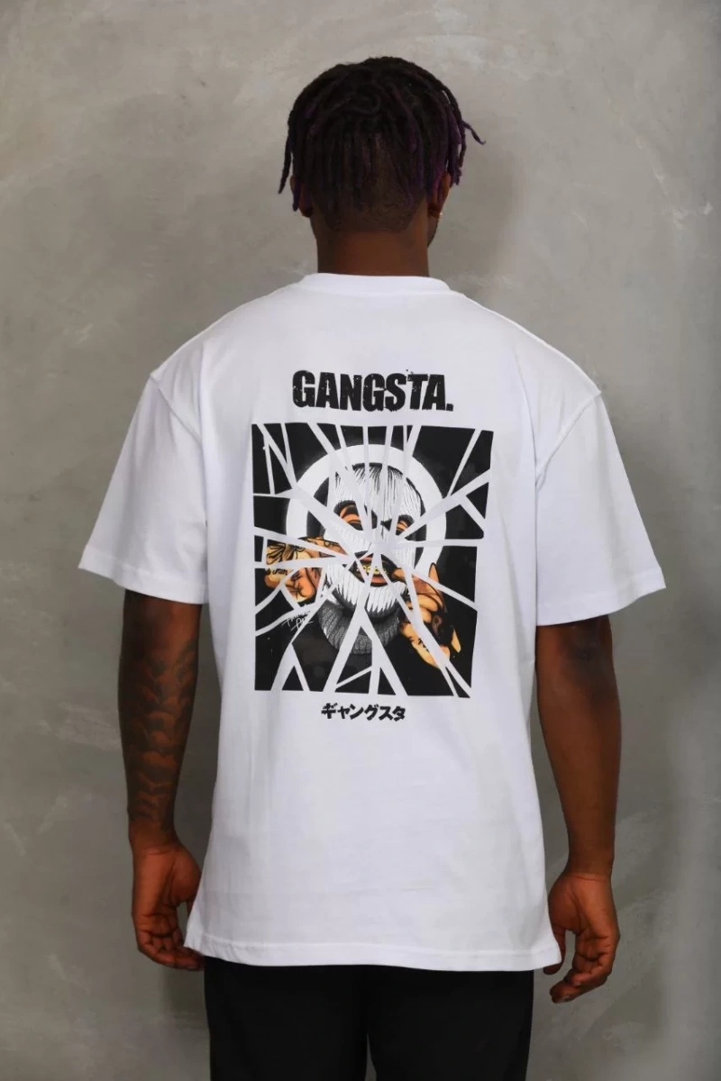Unisex Oversize Baskılı Bisiklet Yaka T-Shirt - Beyaz