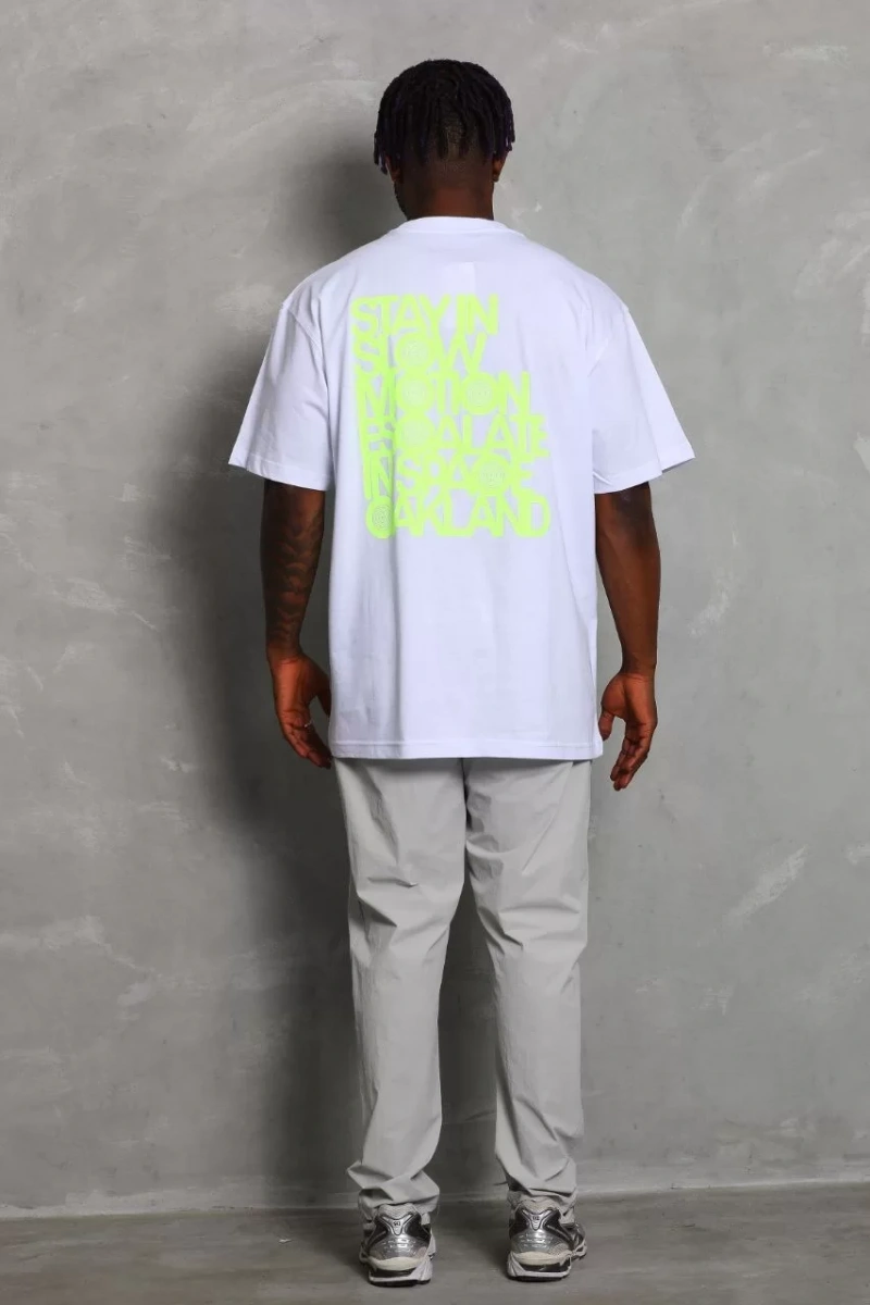 Unisex Oversize Baskılı Bisiklet Yaka T-Shirt - Beyaz