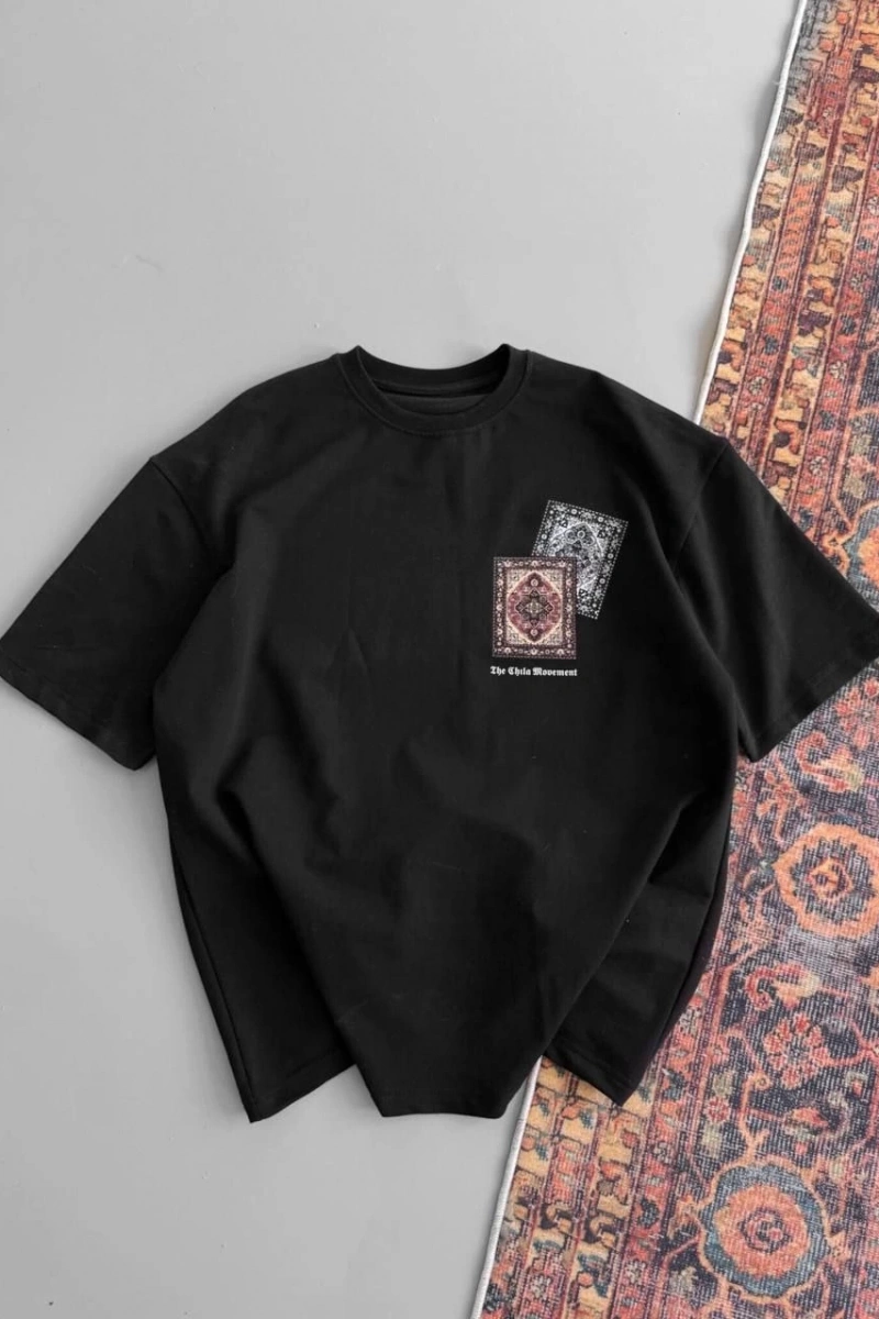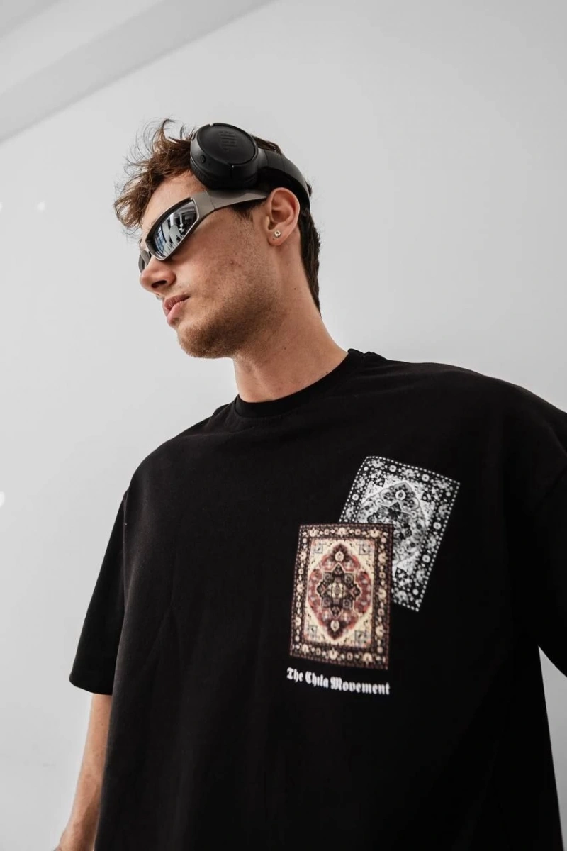 Erkek Baskılı Oversize T-shirt - Siyah