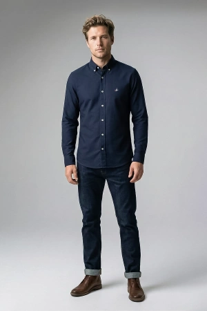 Erkek Lüks Gabardin Kumaş Cepsiz Regular Fit Düğmeli Yaka Gömlek - Lacivert