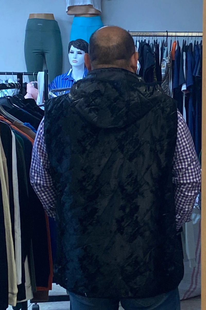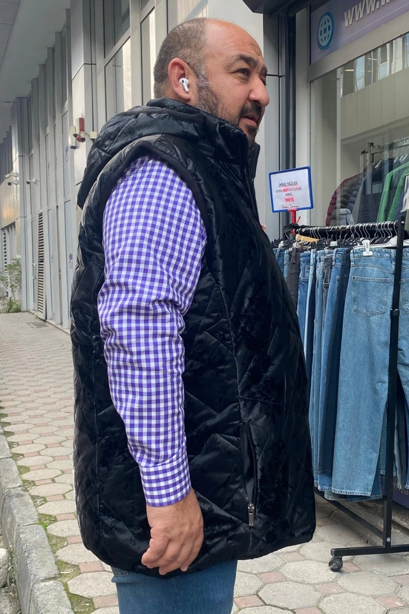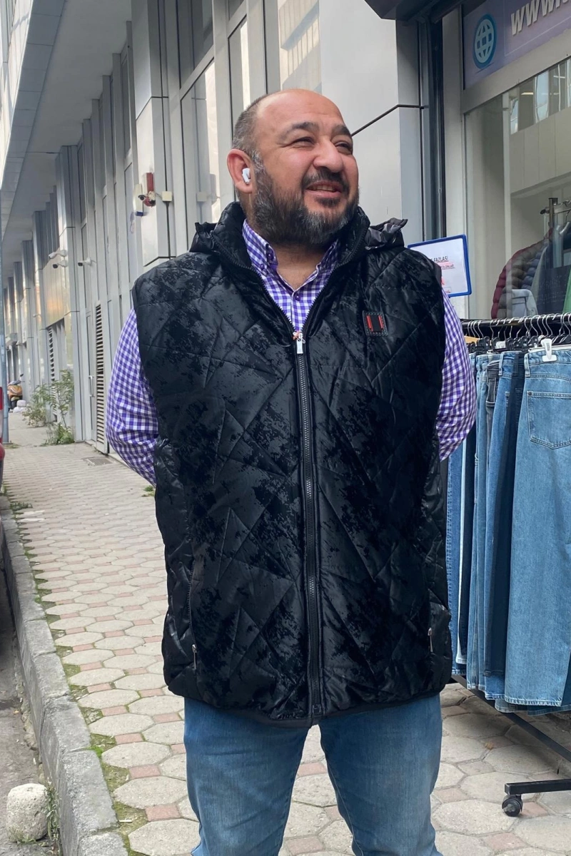Erkek Büyük Beden Kapitone Kapüşonlu Yelek Kömür Siyah