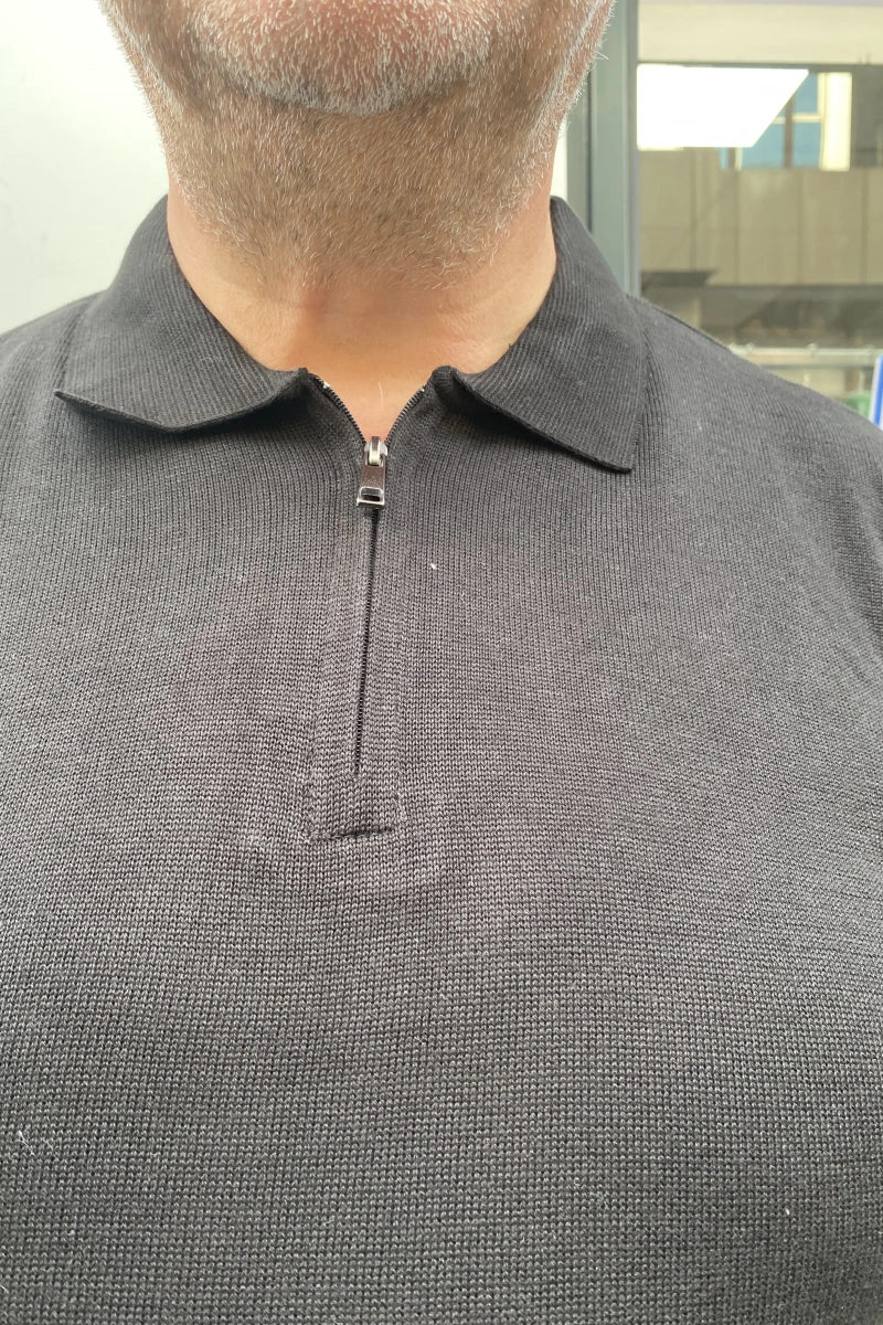 ModeXL Erkek Büyük Beden Yarım Fermuarlı Triko Kazak - Siyah