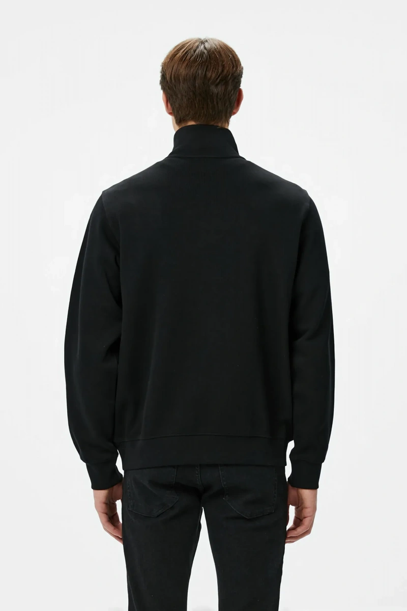 Erkek Classic Fit Yarım Fermuarlı Double Face Siyah Sweatshirt