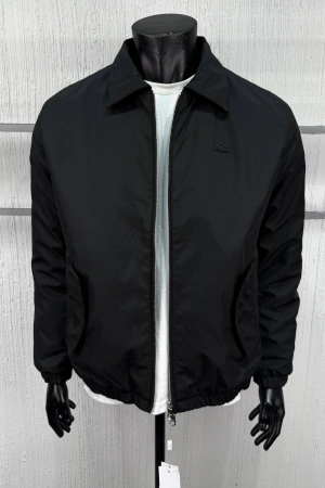 Erkek Çift Fermuarlı Cep Kapamalı Armalı Ceket Mont Siyah