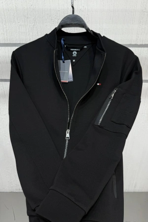 Erkek Tam Fermuarlı Mevsimlik Hırka Sweatshirt Siyah