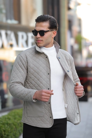 Klasik Çift Taraflı Dolgulu Çıt Çıt Kapama Ceket Haki / Kahve