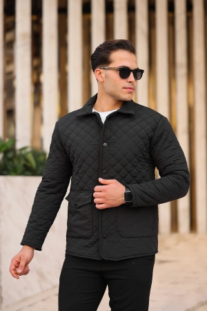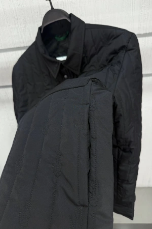 Erkek Kapitone İçi Kürklü Gömlek Yaka Çıtçıtl Kapama Mont Ceket Siyah