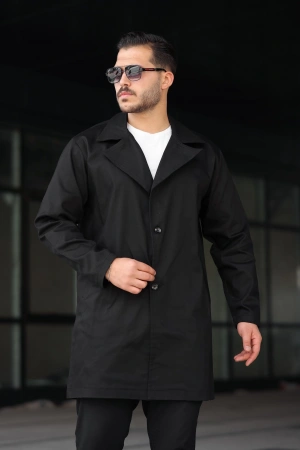Erkek Kruvaze Yaka Regular Fit Gabardin Trençkot Siyah
