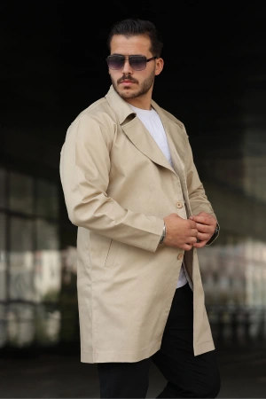 Erkek Kruvaze Yaka Regular Fit Gabardin Trençkot Bej