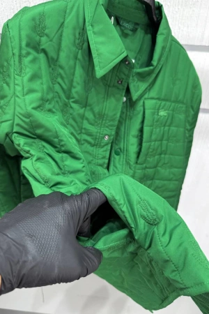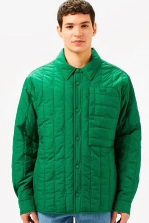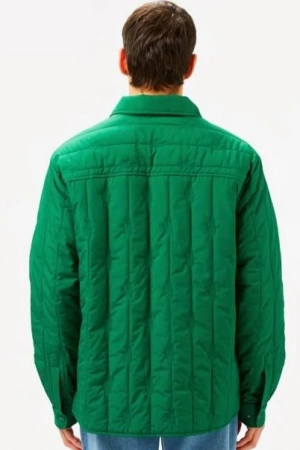 Erkek Kapitone İçi Kürklü Gömlek Yaka Çıtçıt Kapama Mont Ceket Açık Yeşil