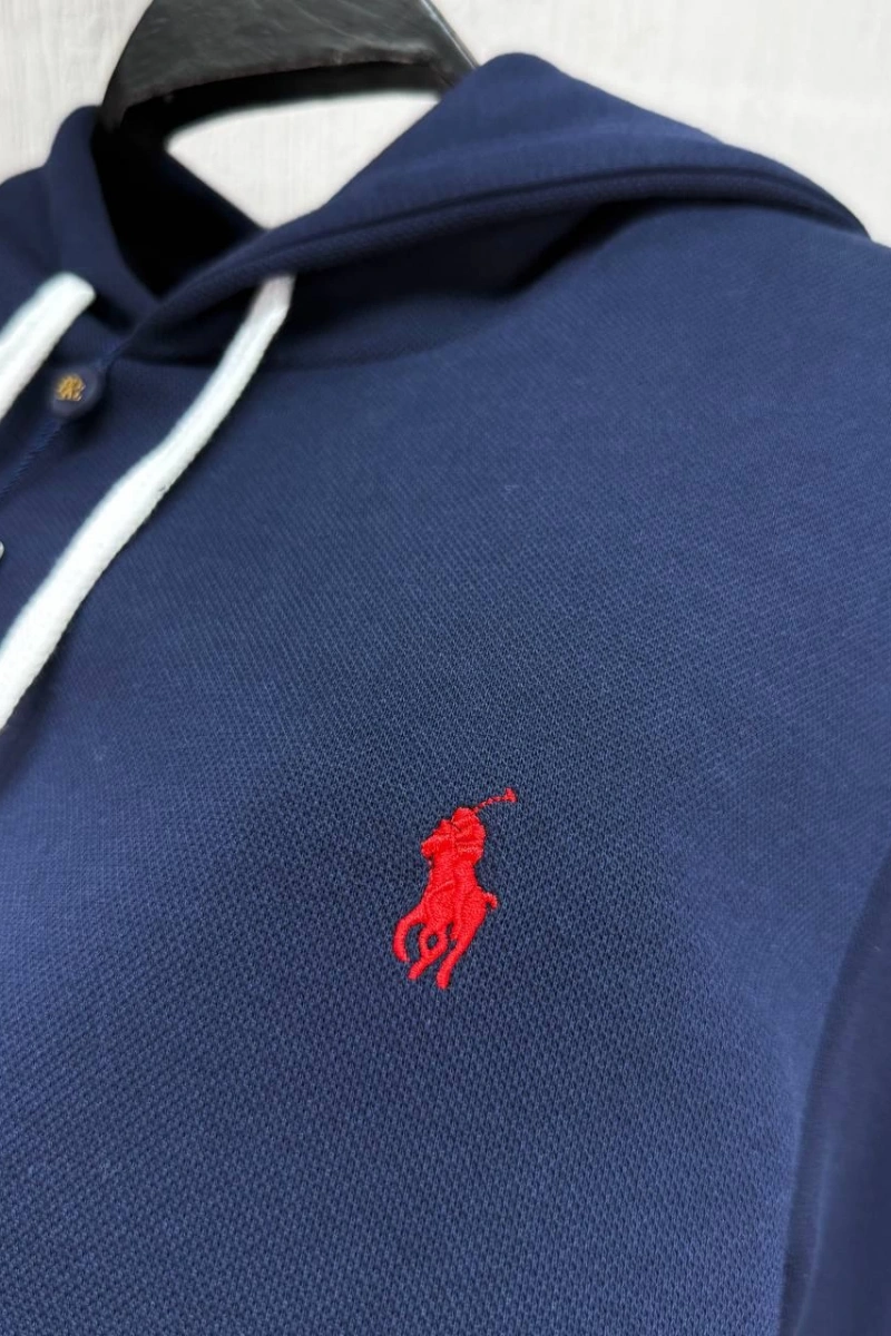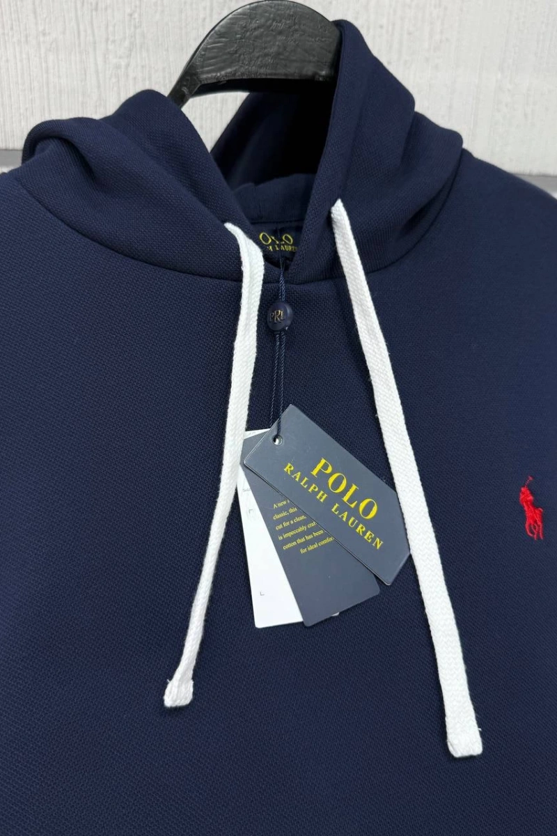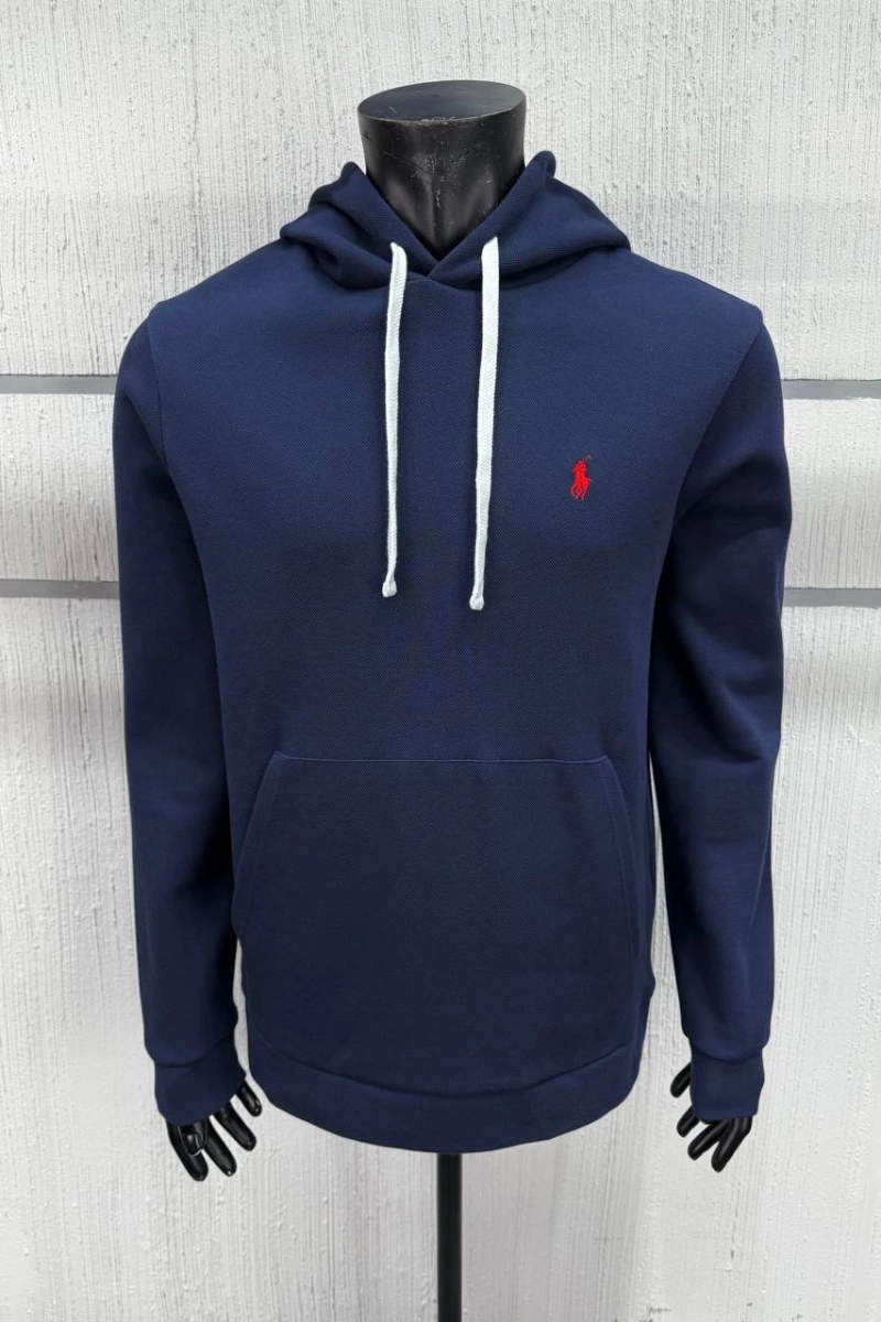 Erkek Double Face Pike Kanguru Cepli Kapüşonlu Hoodie Sweatshirt Lacivert